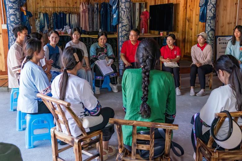 在花垣县十八洞村,苗家绣娘埋首于一针一线间,在指尖传承已有千年历史的手工技艺。得益于“让妈妈回家”志愿服务项目,越来越多的外地务工妈妈正在返乡加入苗绣创业培训,用传统手艺支撑起自己及家人的生活。十八洞村已有50余名妇女实现在家门口就业,人均年收入达到2万多元。