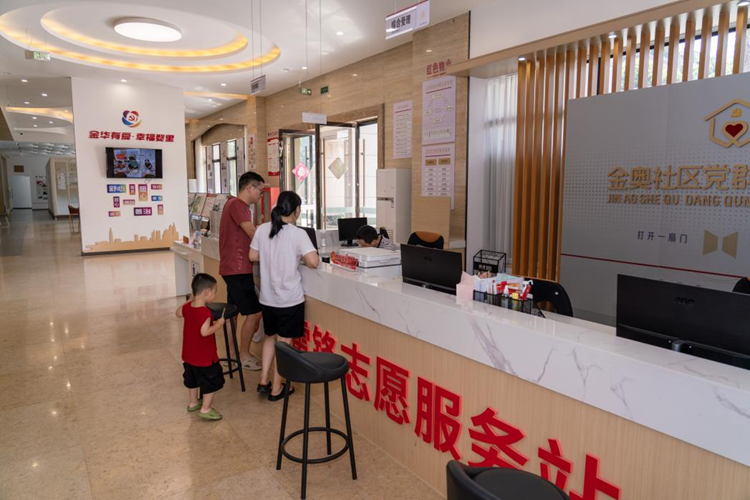 9月1日,社区居民正在浙江省金华市婺城区金奥社区办事。近年来,该社区围绕“邻里筑家、情暖金奥”品牌建设,组建“小巷管家”“小巷助理”“小巷骑兵”等12支队伍,为辖区居民提供全方位、宽领域、一站式的热情服务。新华网 钟奕 摄