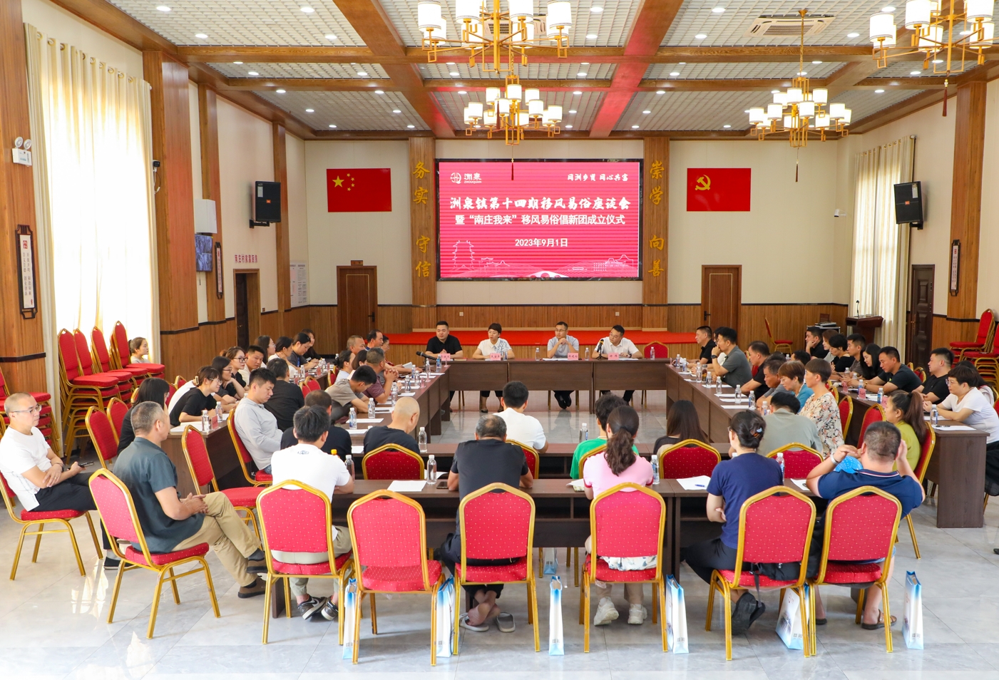 洲泉镇第14期移风易俗集体座谈会现场。