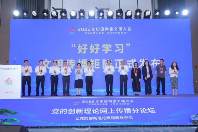6月10日下午,2025年中国网络文明大会党的创新理论网上传播分论坛在安徽合肥举行。论坛上发起了“好好学习”文明传播矩阵。