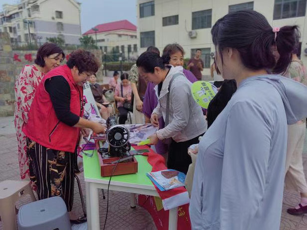 秋萍志愿服务队为居民免费缝补衣物。
