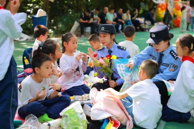 福安市公安局坂中派出所联合多部门巧思设计,把防溺水、防诈骗、禁毒等实用知识,悄悄“揉”进了秋游的每一处环节。“救生装备穿戴大比武”上,孩子们撸起袖子争相比拼,在民警指导下把穿戴技巧练得滚瓜烂熟;“反诈小卫士”问答环节,小手举得老高,抢答声此起彼伏,朗朗口诀顺着笑声记进心间;模拟“接警现场”更是代入感拉满,孩子们学着清晰报地址、说情况,把求助技巧刻进脑海。玩着学、比着练,那些亲手实操的本领、随口能背的口诀,让安全意识就这么稳稳扎进了孩子们心里。